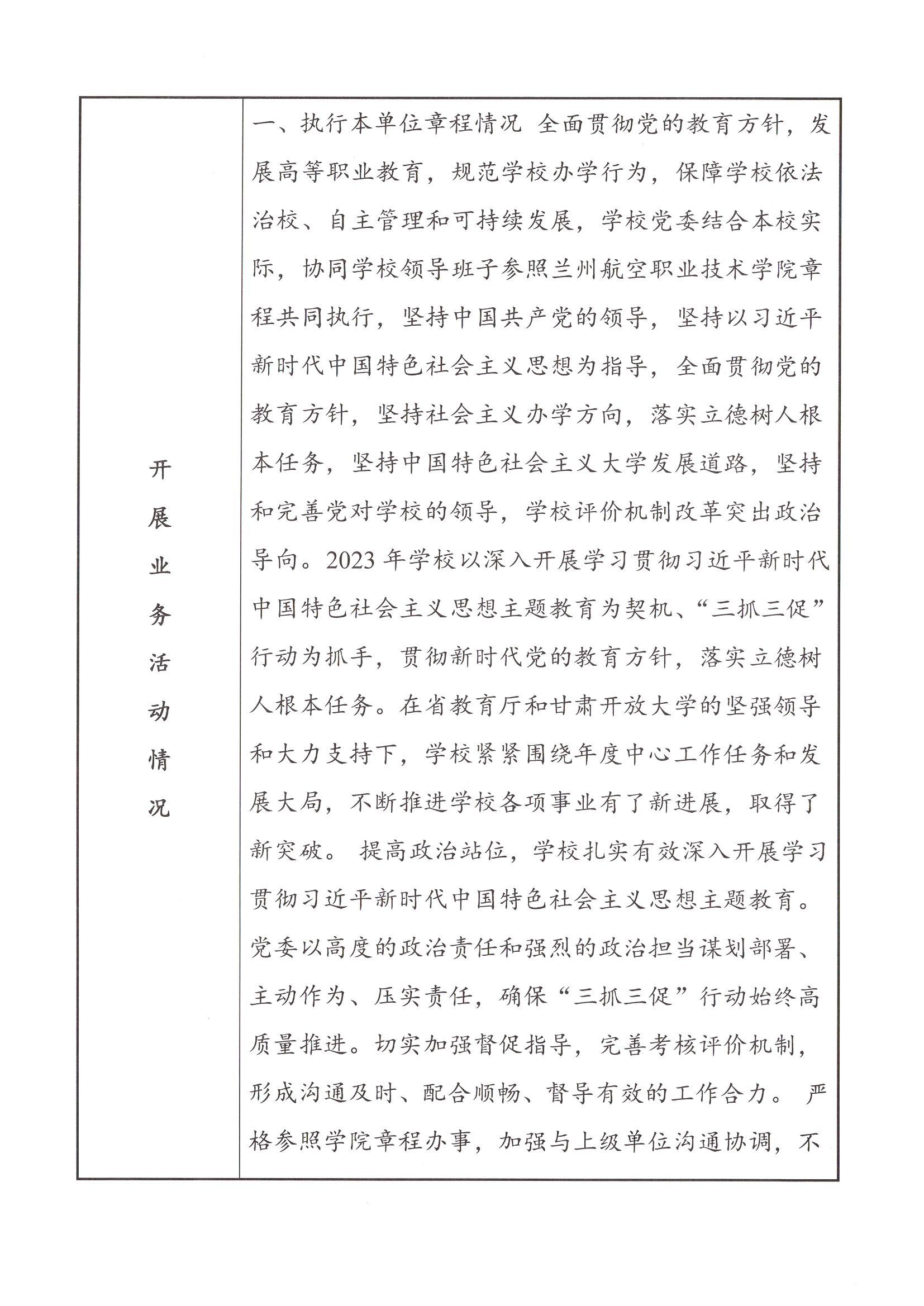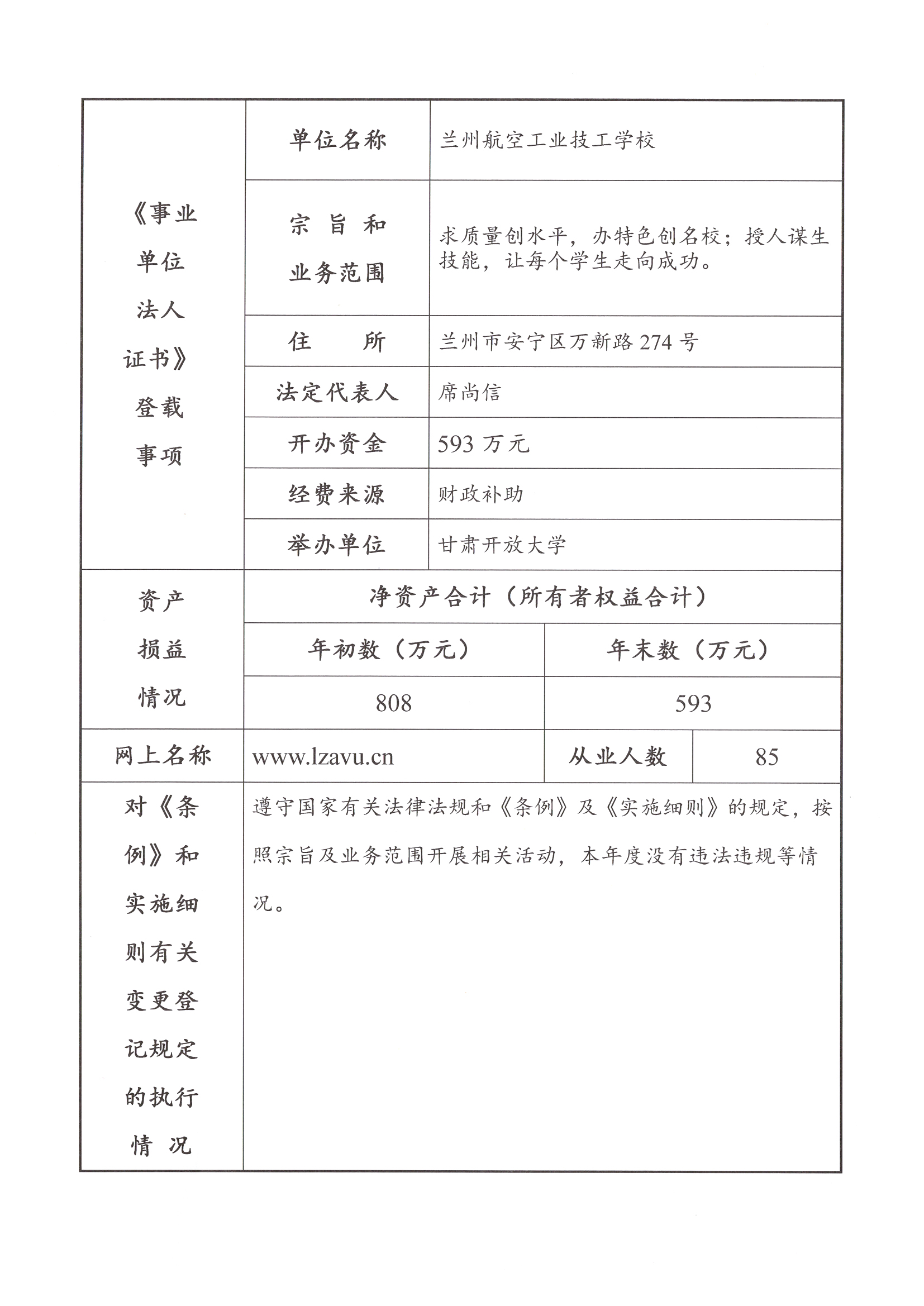 2023年度兰州航空工业技工学校事业单位法人年度报告书公示
