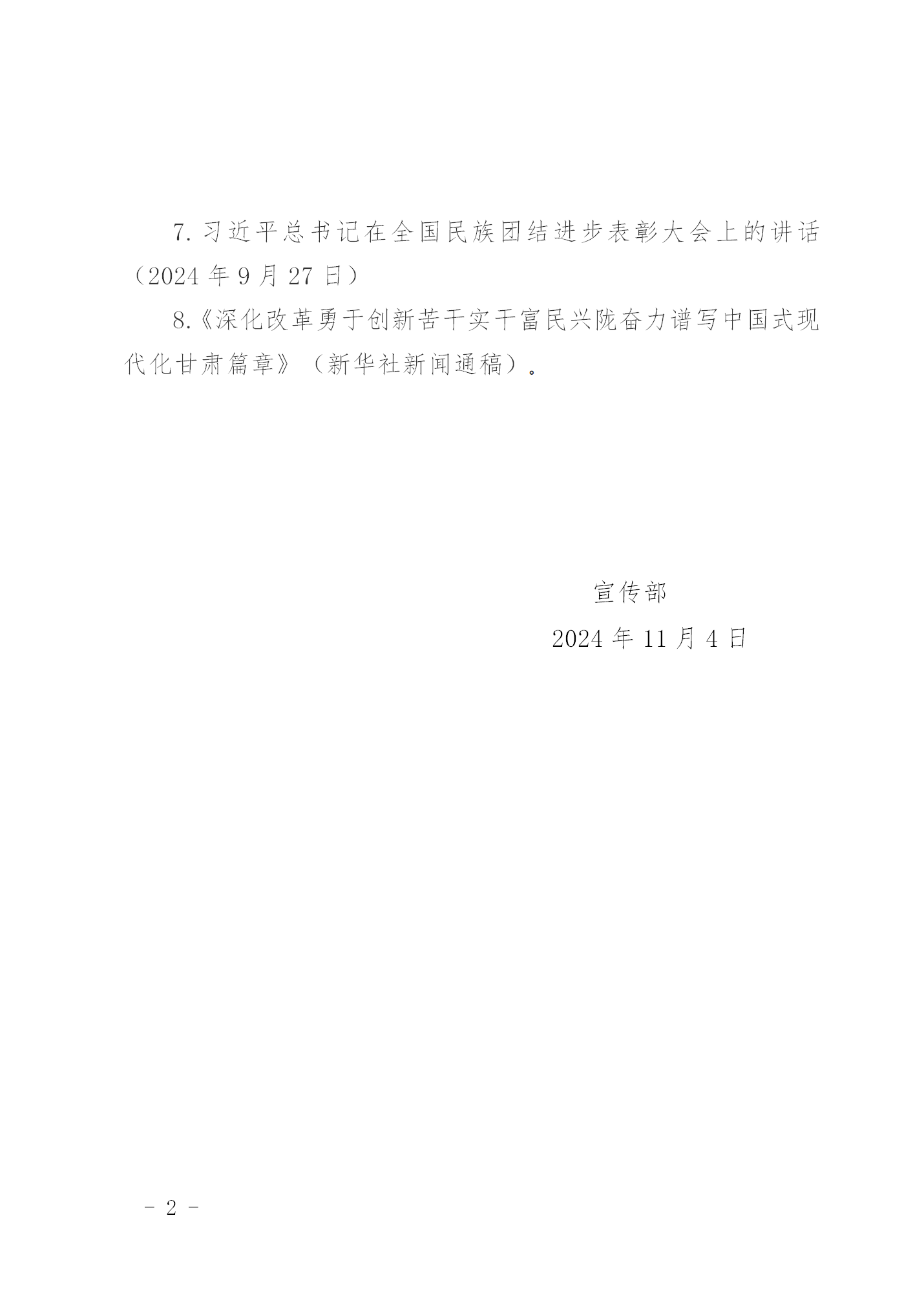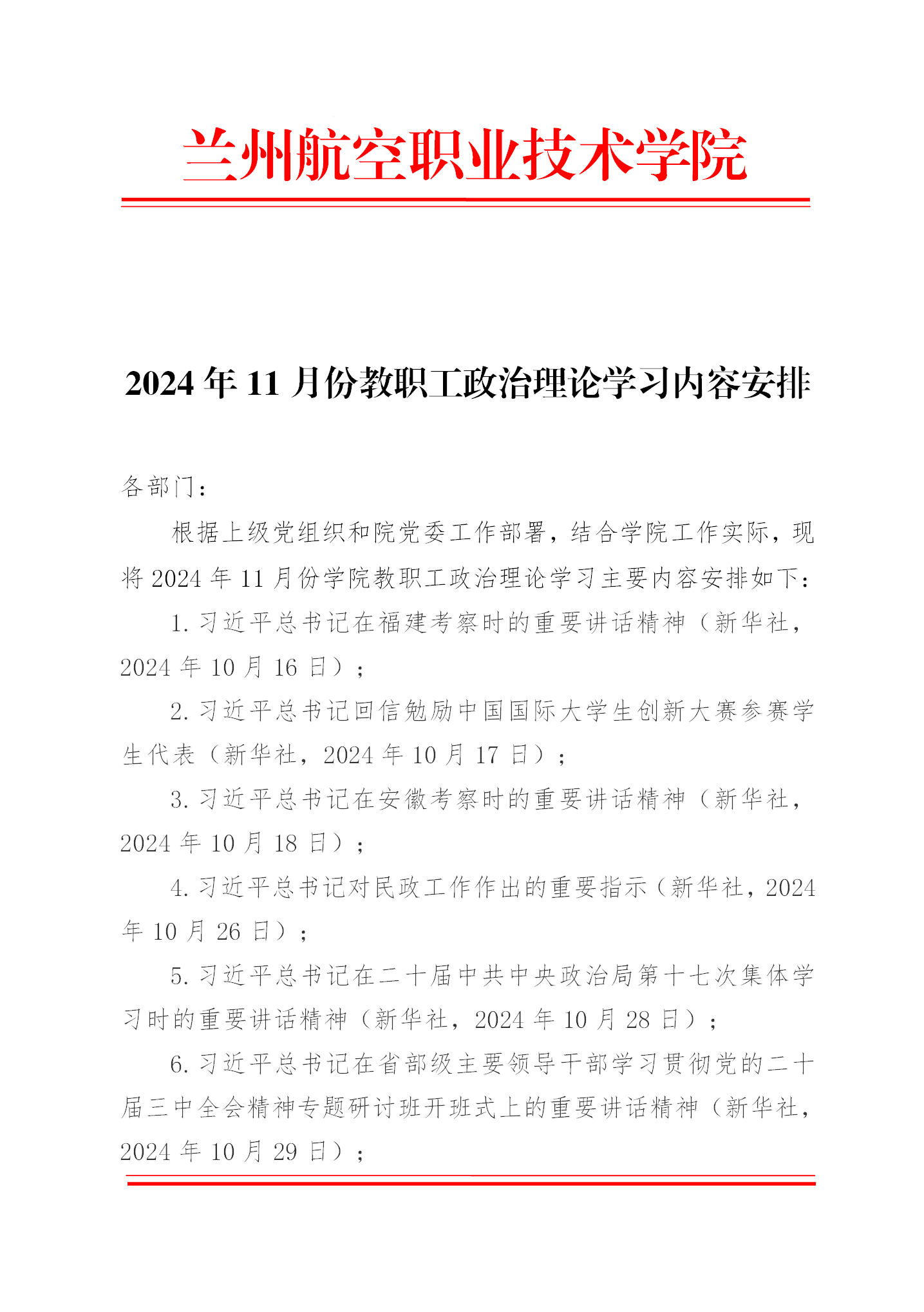 2024年11月份教职工政治理论学习内容安排
