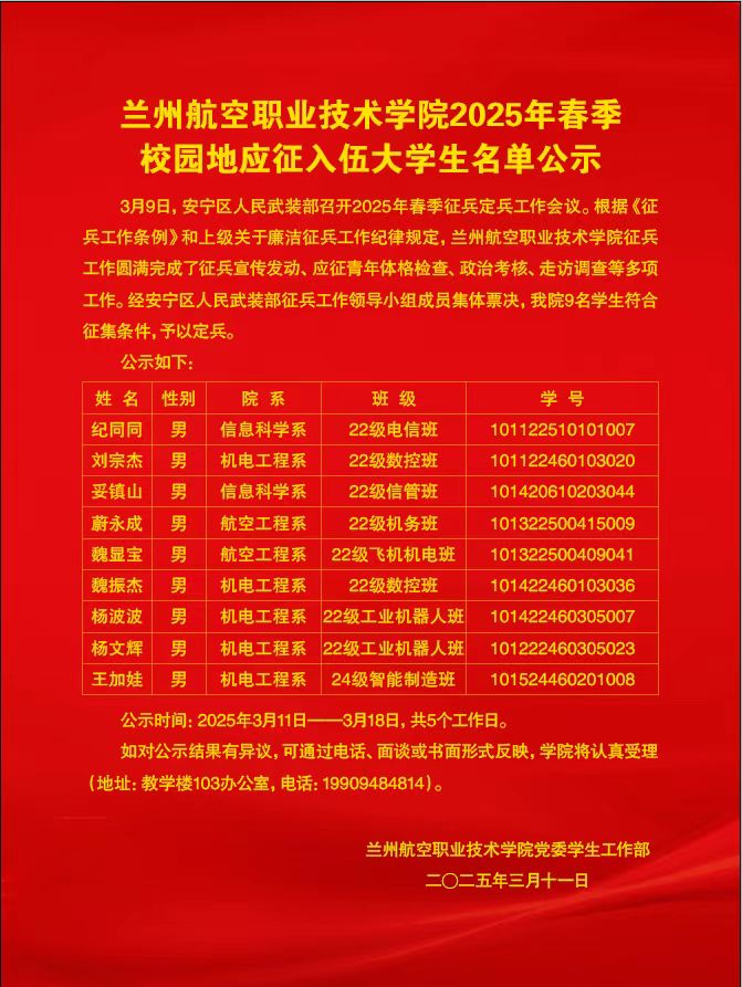 taptap点点体育2025年春季校园地应征入伍大学生名单公示