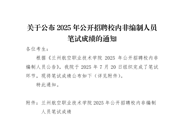关于公布2025年公开招聘校内非编制人员笔试成绩的通知