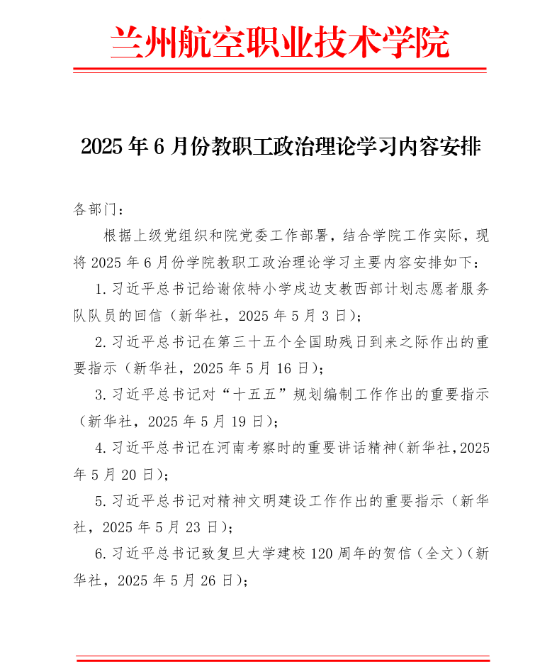 2025年6月份教职工政治理论学习内容安排