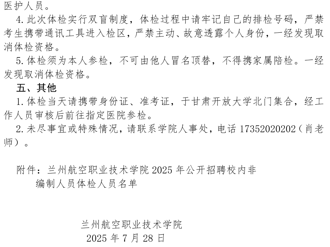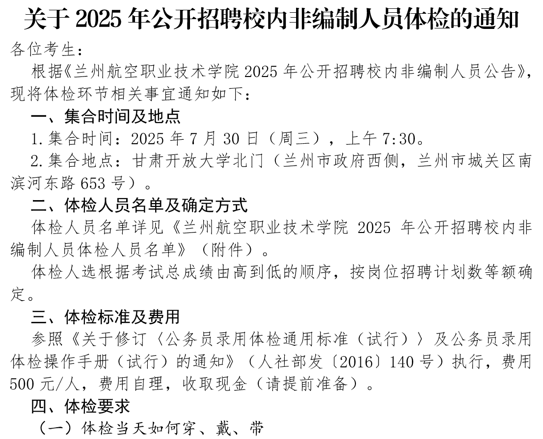 关于2025年公开招聘校内非编制人员体检的通知
