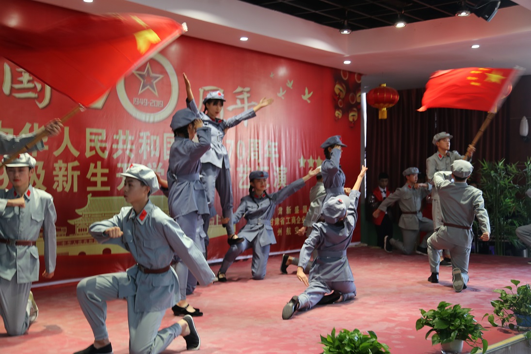 在开学典礼结束后,学生们还上演了庆祝中华人民共和成立70周年文艺汇演。一个个由学生自编、自导、自演的形式多样的节目,表达了兰航学子对祖国母亲的深深祝福。