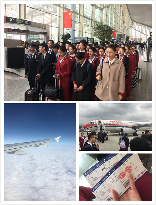 图为学生们搭乘航班