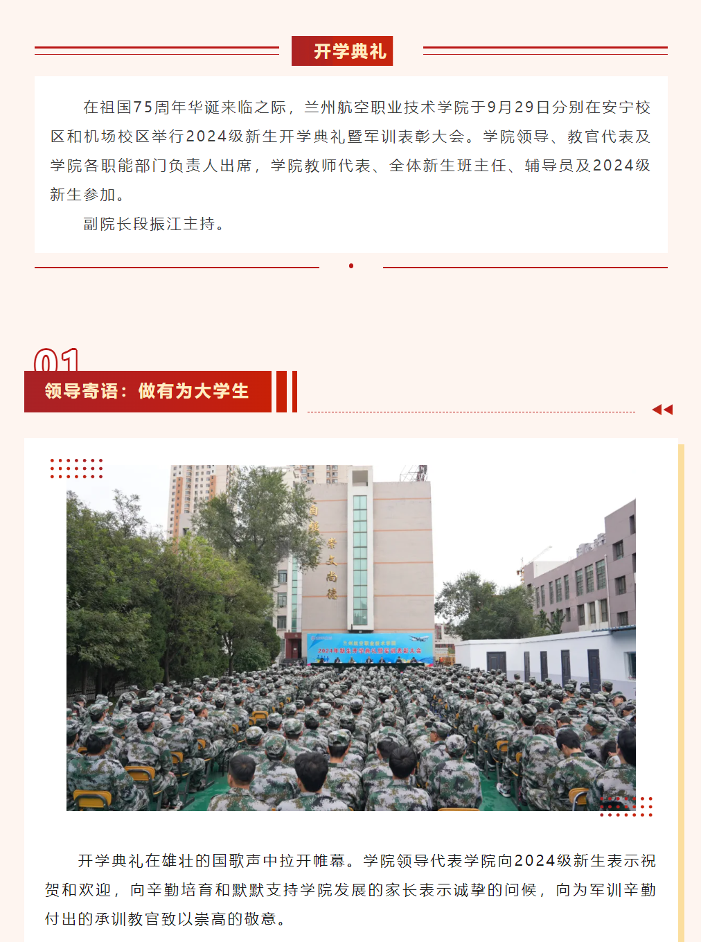 起航!|学院举行2024年新生开学典礼暨军训表彰大会